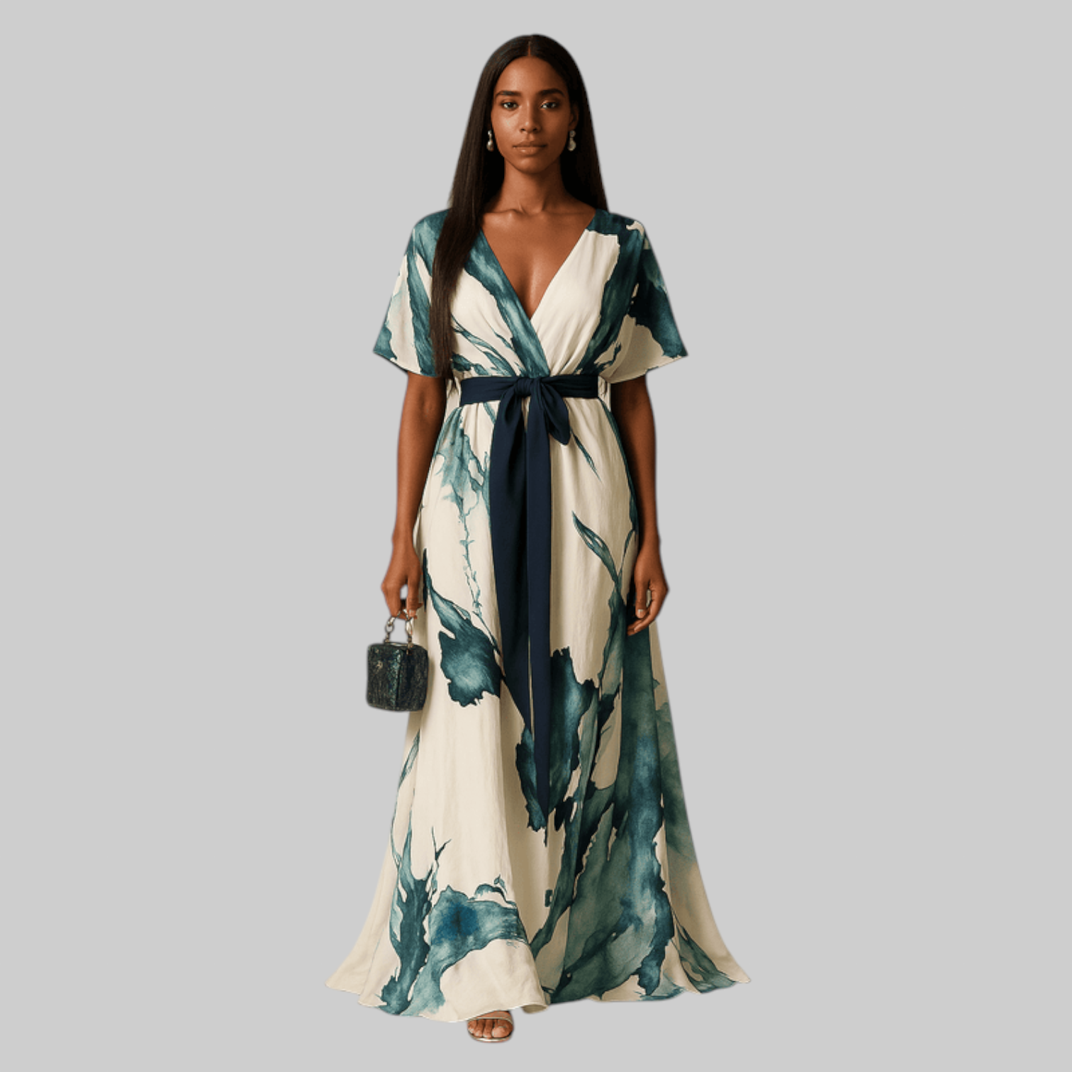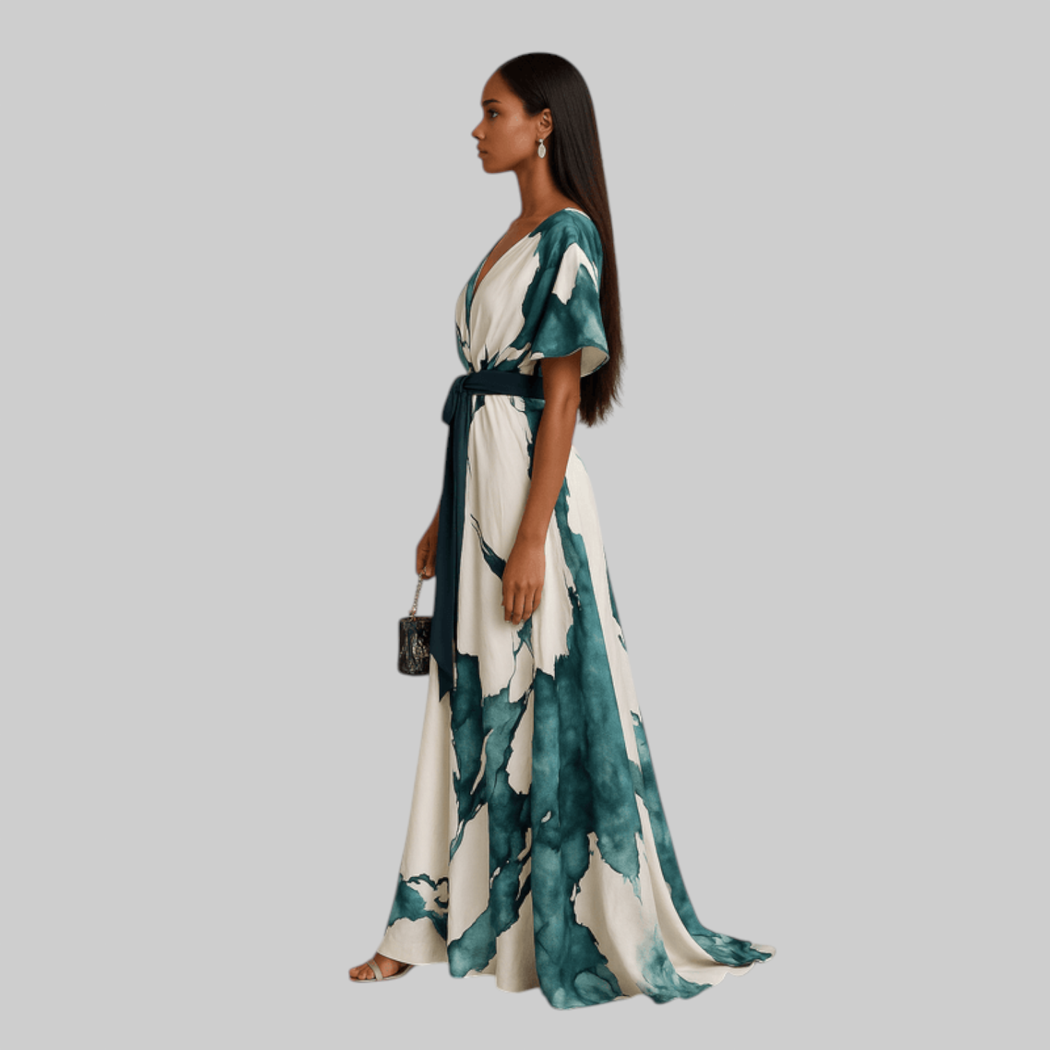 Vestido Largo con Efecto Acuarela – Elegancia en Movimiento