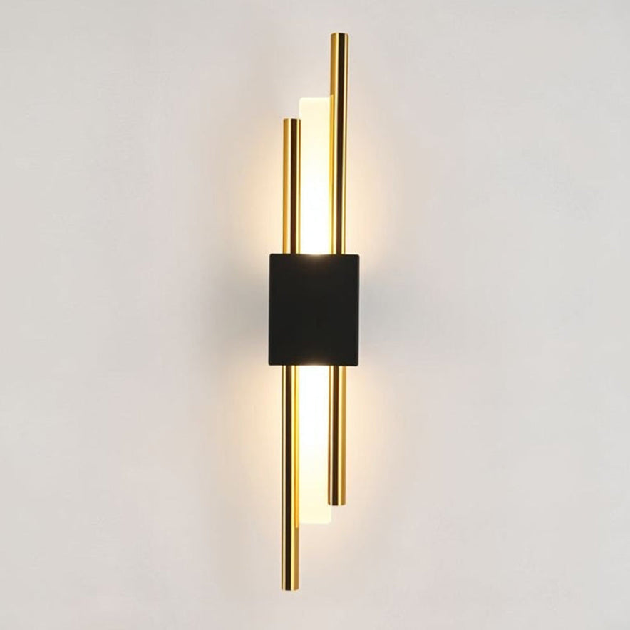 Descubre una iluminación de pared que eleva la estética del hogar con un elegante acabado negro y dorado.
