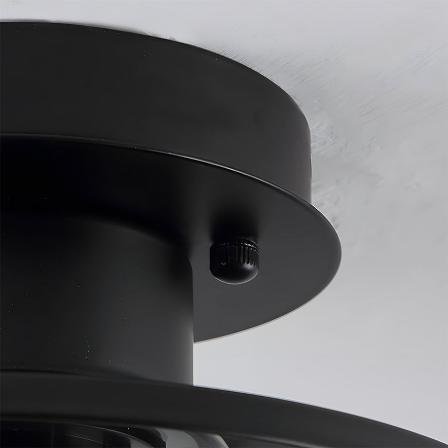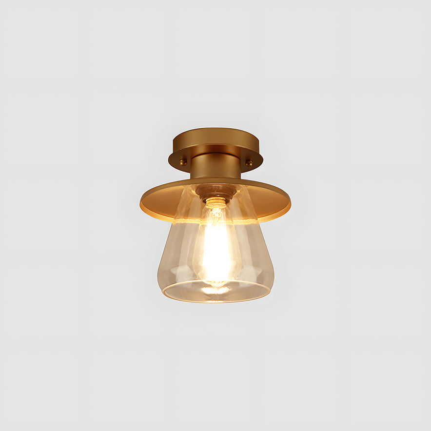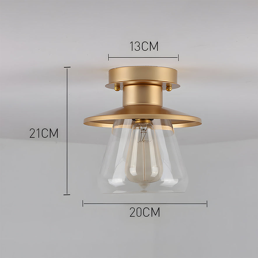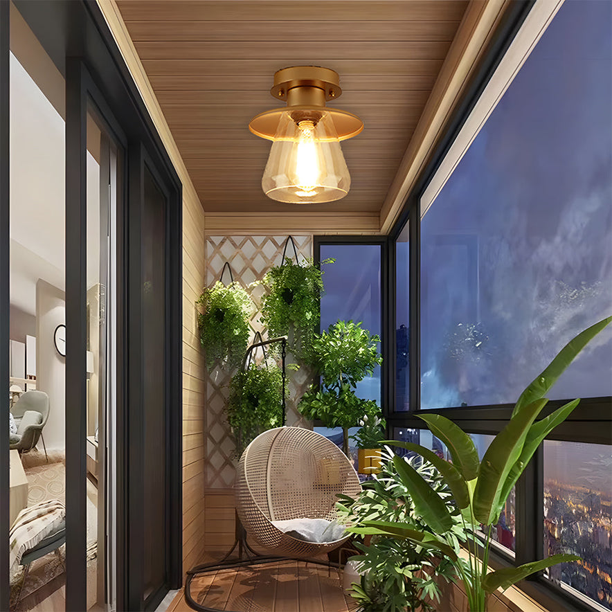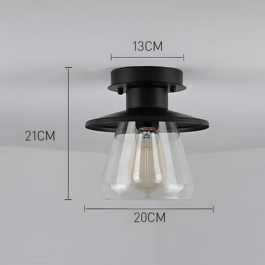 Lámpara de techo para exterior con acabado vintage en hierro y cristal, diseñada para aportar un estilo industrial elegante que realza porches, entradas y terrazas cubiertas.