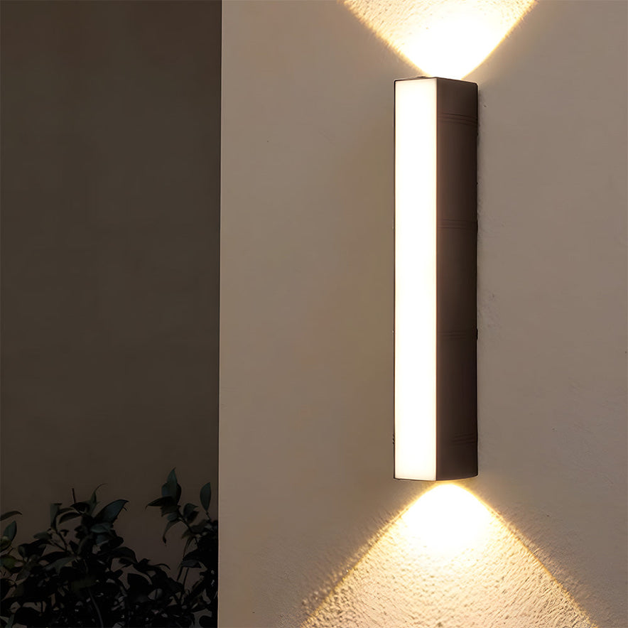 Iluminación vertical de alto impacto para exteriores modernos. Este aplique LED exterior de Lumera Madrid destaca por su formato tubular alargado y su potente haz de luz bidireccional, ideal para realzar fachadas, muros y accesos con una estética contemporánea y sofisticada.
